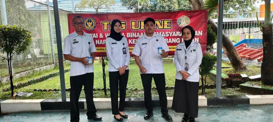 Sebagai upaya pencegahan penyalahgunaan narkoba serta menjaga kesucian bulan Ramadan, Lembaga Pemasyarakatan (Lapas) Narkotika Kelas IIA Karang Intan menggelar tes urin bagi petugas dan warga binaan pemasyarakatan (WBP), Rabu (19/3).