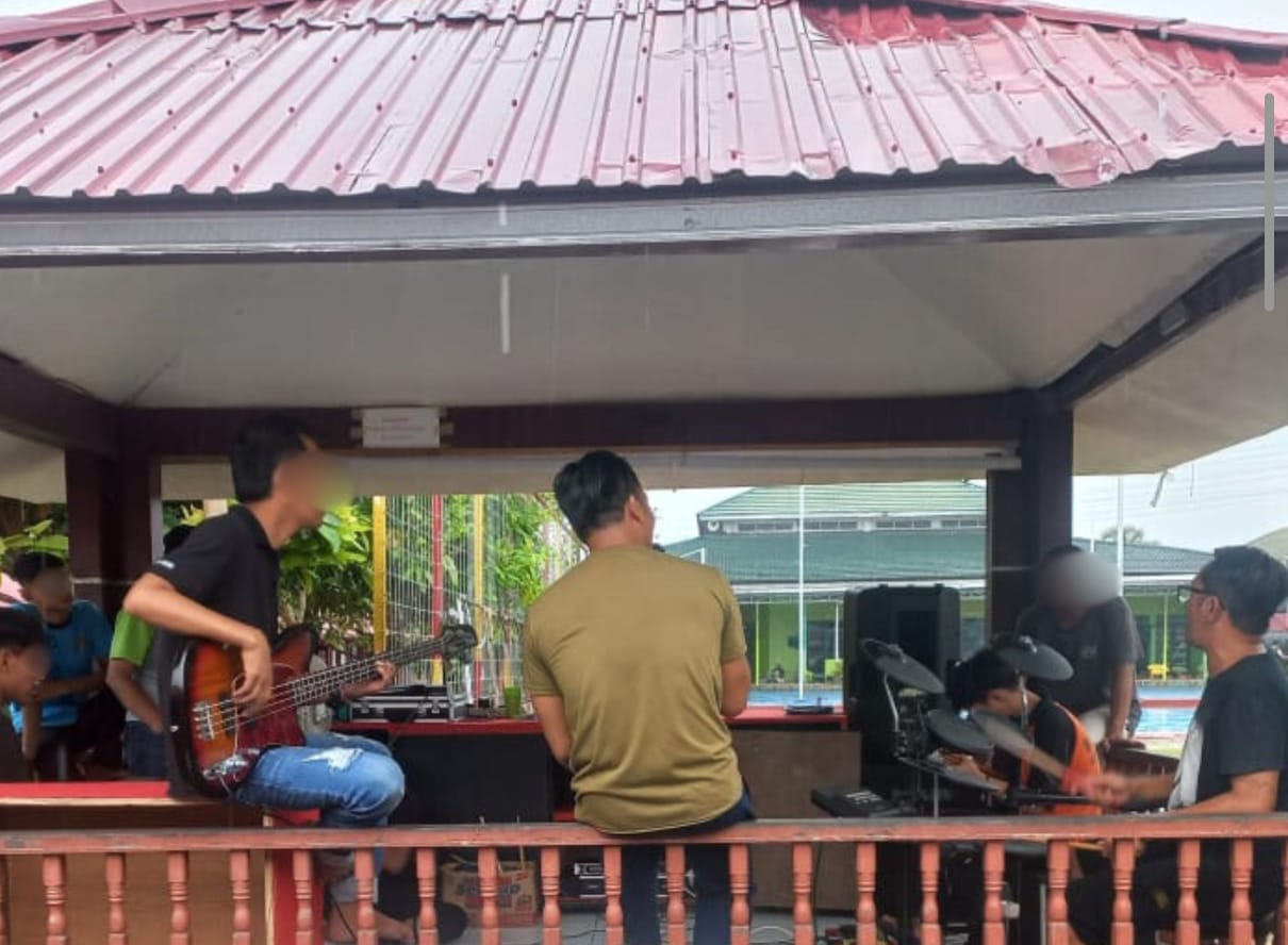 Suasana gazebo Lapas Kelas IIA Banjarmasin dipenuhi semangat dan keceriaan. Sejumlah warga binaan tampak serius namun penuh antusias mengikuti latihan musik sebagai bagian dari program pembinaan seni dan kreativitas.
