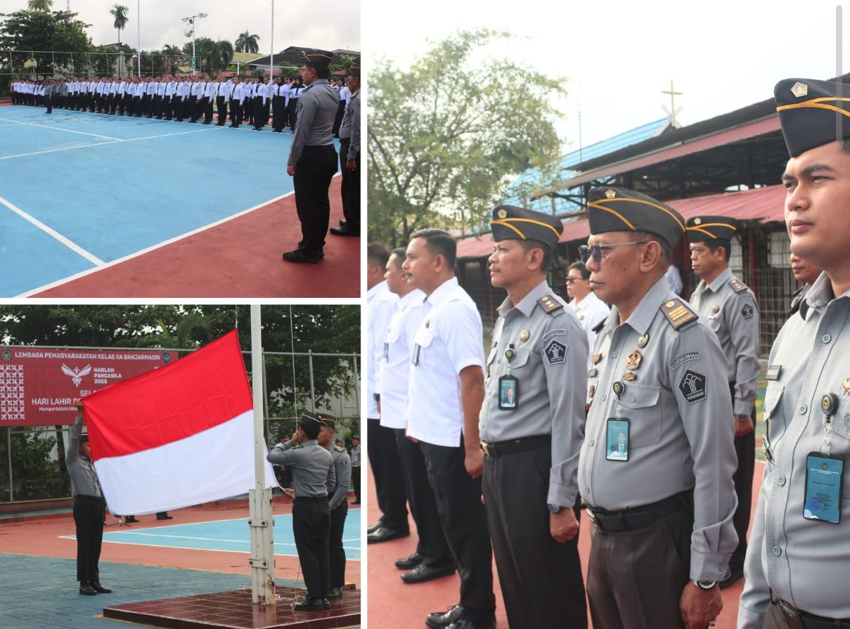 Dalam rangka memperingati Hari Lahir Pancasila yang jatuh pada 1 Juni, Lapas Kelas IIA Banjarmasin menggelar upacara bendera dengan penuh khidmat pada Senin pagi (2/6). Bertempat di halaman utama Lapas, kegiatan ini dipimpin langsung oleh Kepala Kantor Wilayah Direktorat Jenderal Pemasyarakatan Kalimantan Selatan, Mulyadi, yang bertindak sebagai inspektur upacara.
