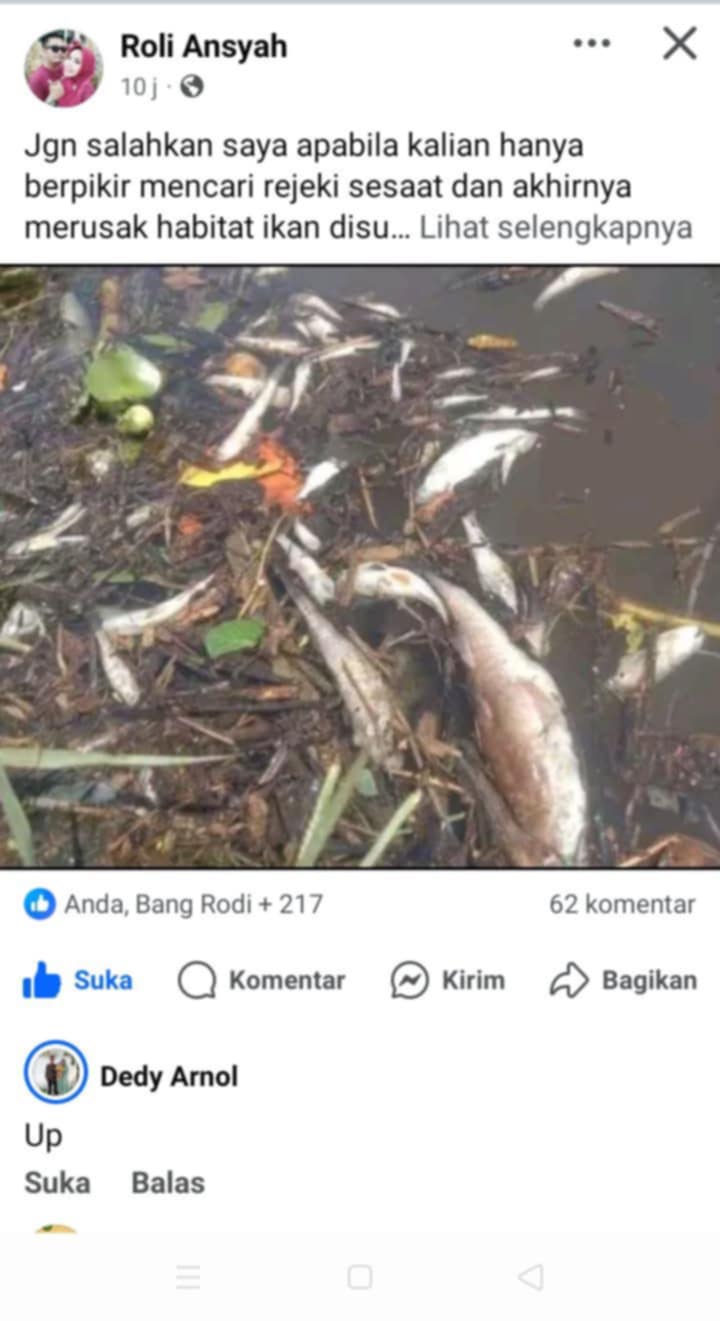Tulang Bawang Barat(saberpungli.com)13 Juli 2025 — Sebuah unggahan di media sosial menghebohkan warga Tulang Bawang Barat. Dalam unggahan akun Facebook bernama R**i A****h, tampak sejumlah ikan ditemukan mati dan membusuk di aliran sungai wilayah Tiyuh Waysido. Dugaan kuat mengarah pada aksi peracunan yang dilakukan oleh oknum tak bertanggung jawab.