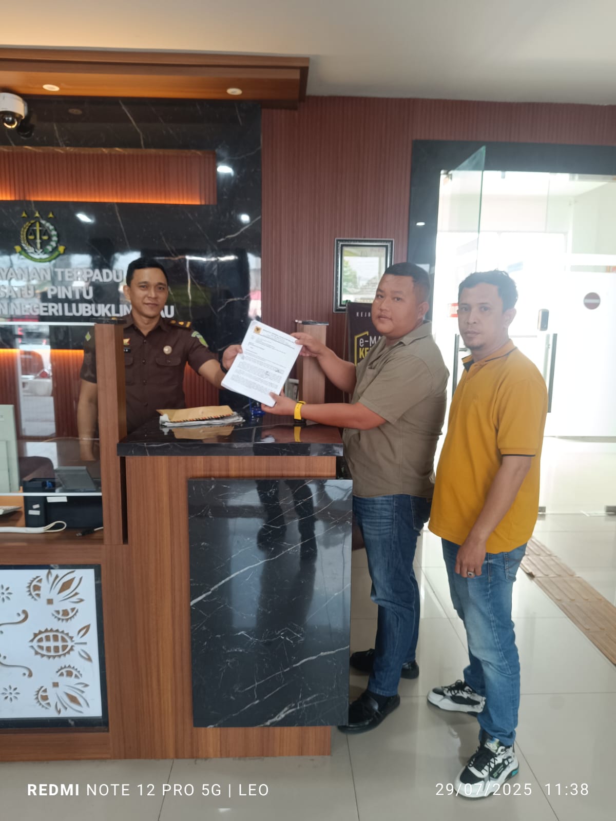 Untuk diketahui laporan tersebut tertanggal 29/07/2025 NO: LP/03/PENJARA/LLG/2025 Perihal laporan dugaan korupsi di pada dinas Pariwisata kota Lubuklinggau tahun anggaran 2023 dan 2024