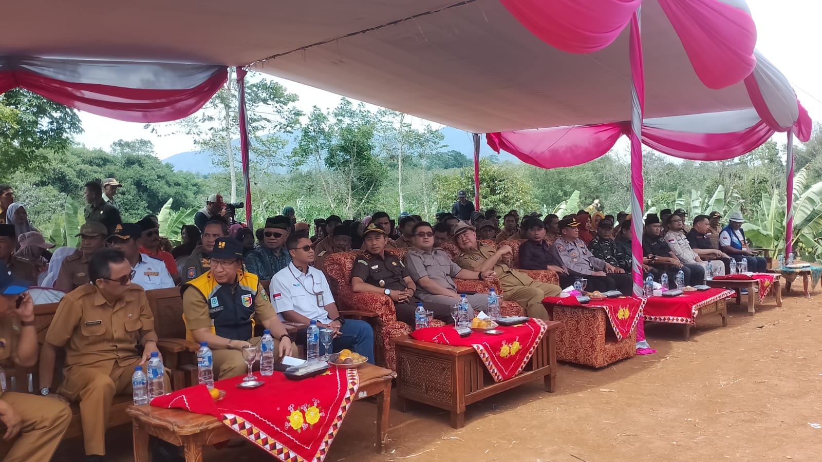 Acara yang berlangsung khidmat tersebut dihadiri oleh jajaran pejabat penting, antara lain Kepala Dinas Pekerjaan Umum Kabupaten Tanggamus Riswanda Junaidi, Kepala Dinas Perhubungan, Kepala Dinas Kominfo Suhartono, Staf Ahli Bupati Syamdjuniston, Ketua DPRD Kabupaten Tanggamus Agung Seti Utomo, Wakil Ketua DPRD M. Rangga Putra Hakim, serta sejumlah anggota dewan lintas fraksi. Hadir pula Camat Ulu Belu Mansyurin, para kepala pekon se-Kecamatan Ulu Belu, serta ratusan masyarakat yang dengan penuh antusiasme menyaksikan momen bersejarah ini.