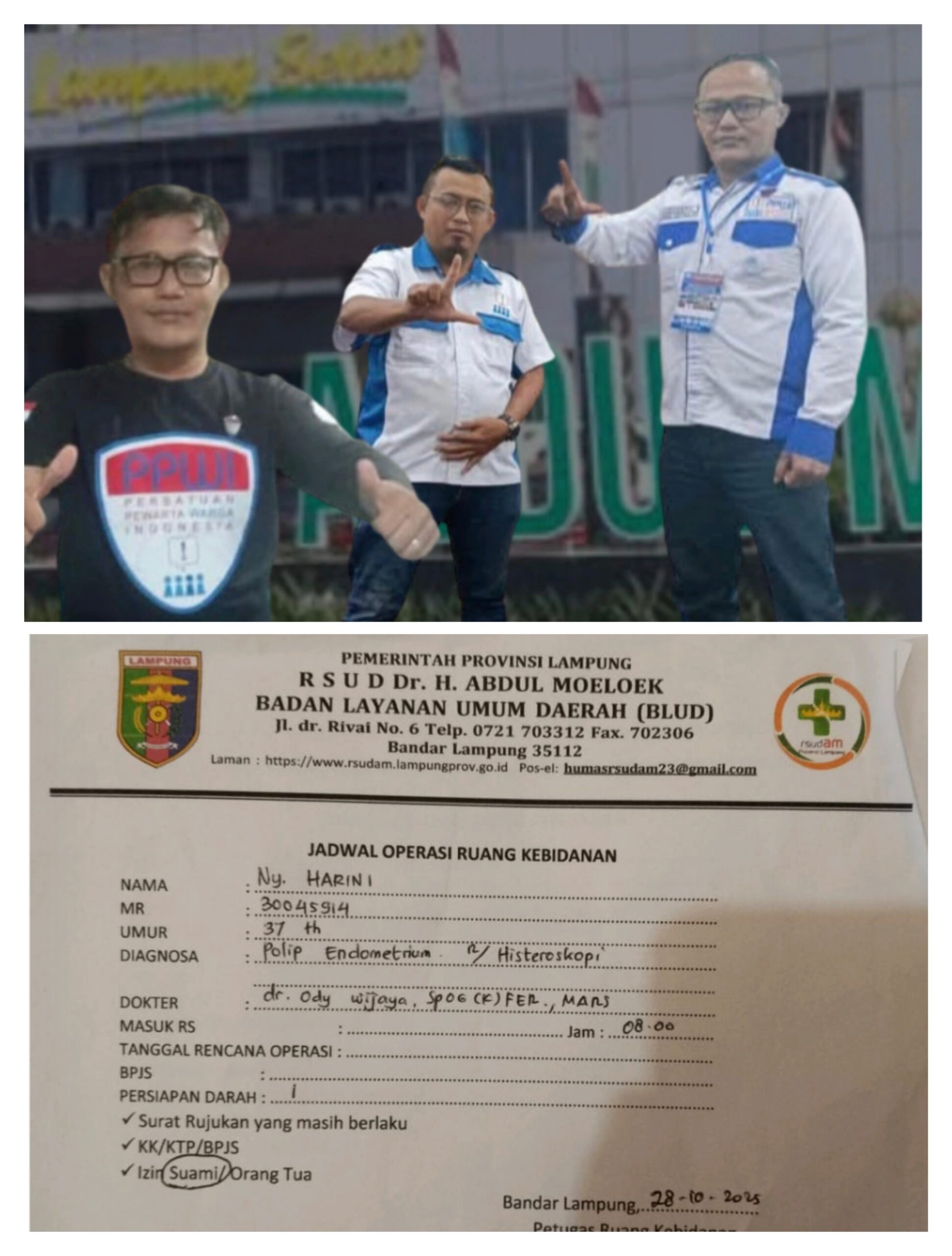 RSUDAM Abdul Moeloek Bantah Penundaan Operasi Selama Tiga Bulan, PPWI Lampung: “Bendahara Kami Merasa Terabaikan”